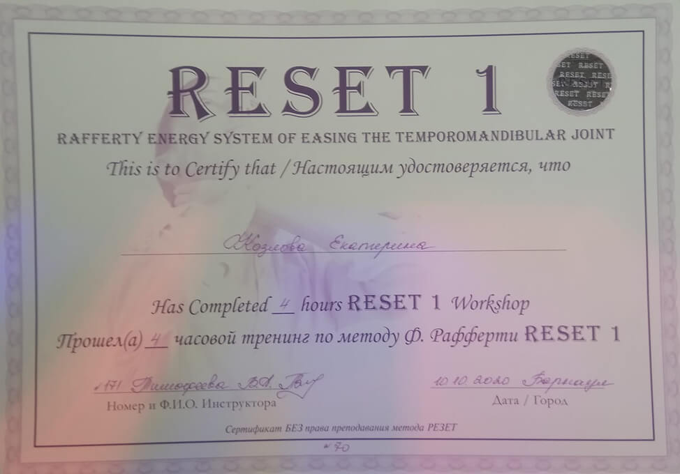 Психолог, кинезиолог, специалист по телесно-ориентированной коррекции эмоциональных блоков методом "Резет"