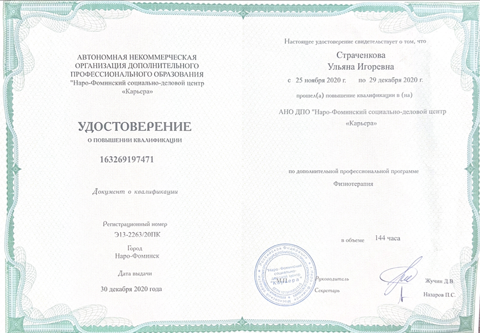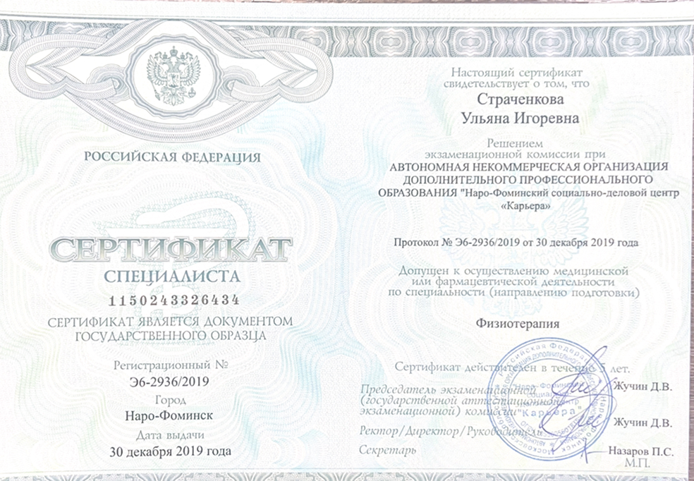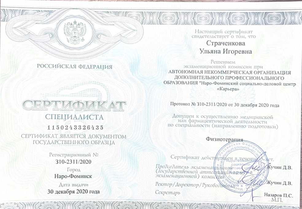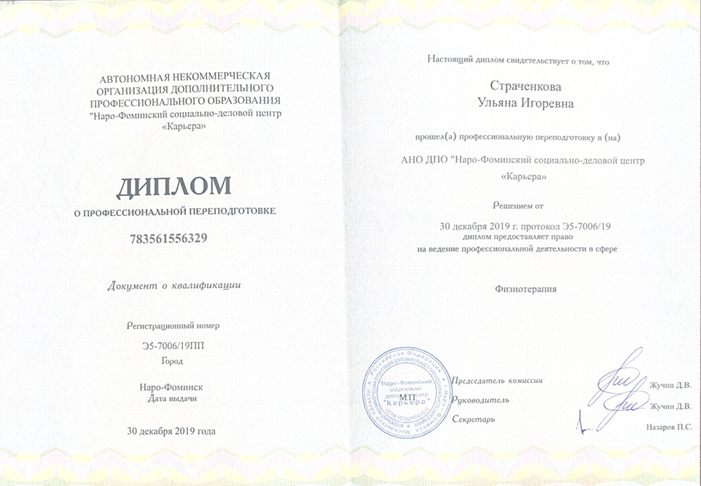 Врач-терапевт, нутрициолог. Вторая квалификационная категория.